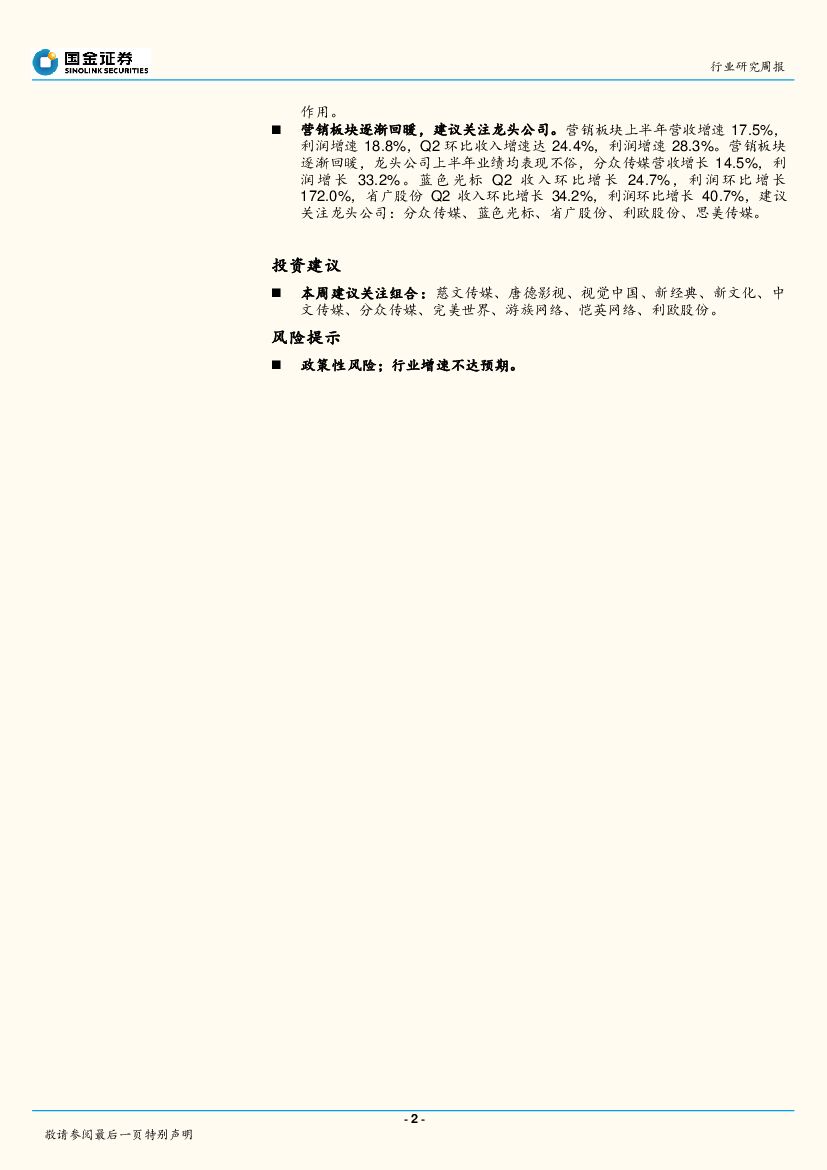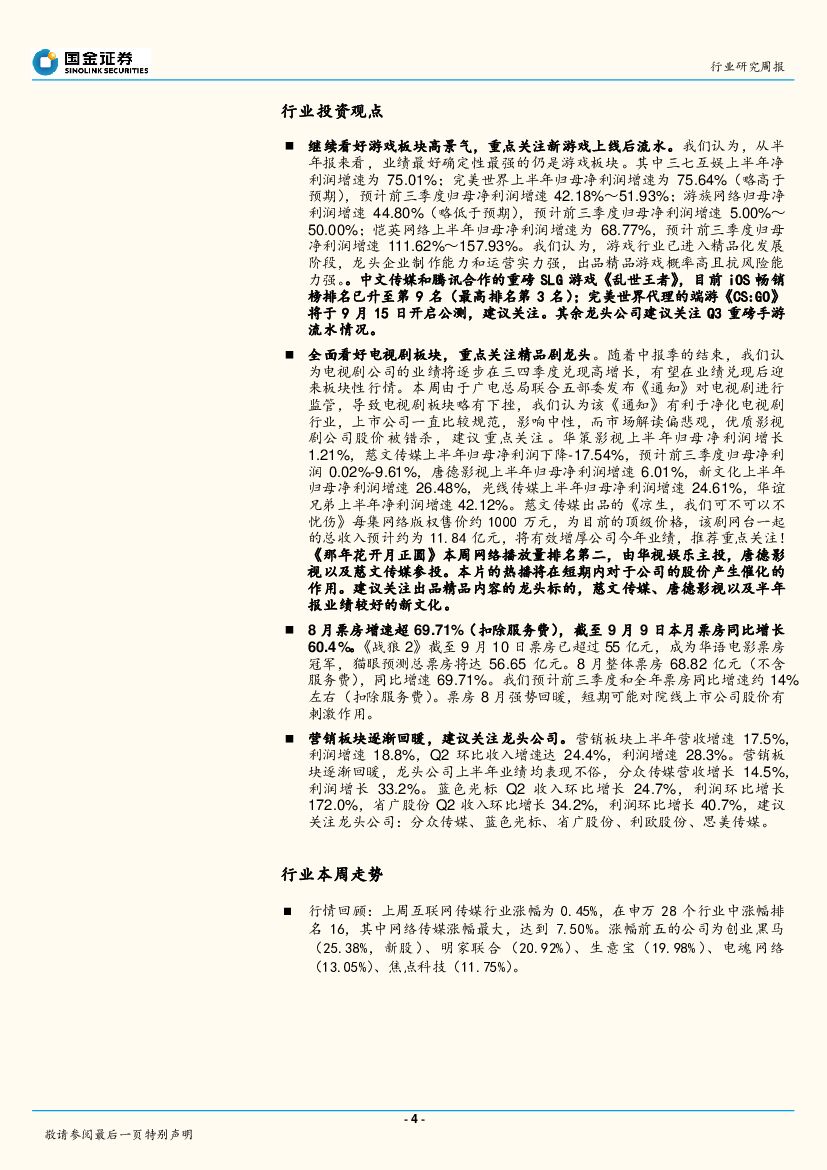 国金证券:传媒行业研究周报:关注三季报行情,看好精品剧龙头.pdf