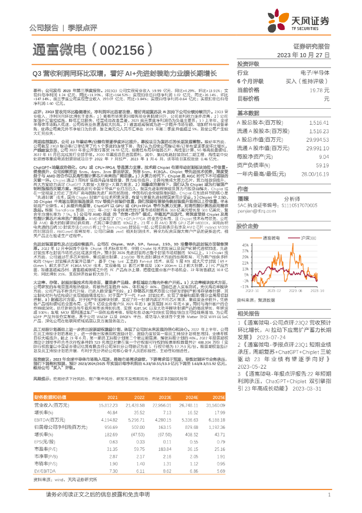 天风证券:通富微电(002156)-Q3营收利润同环比双增,看好AI+先进封装助力业绩长期增长.pdf