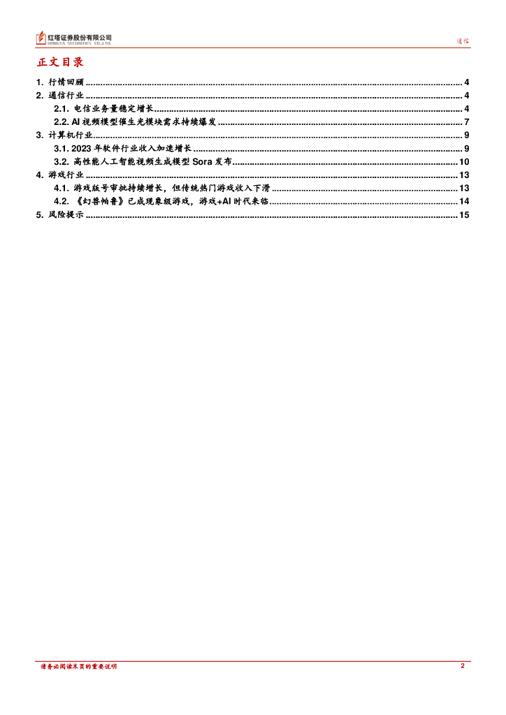 红塔证券:TTable行业月报:视频生成模型 Sora 发布再度引爆人工智能市场;现象级游戏《幻兽帕鲁》或将改变游戏制作模式.pdf