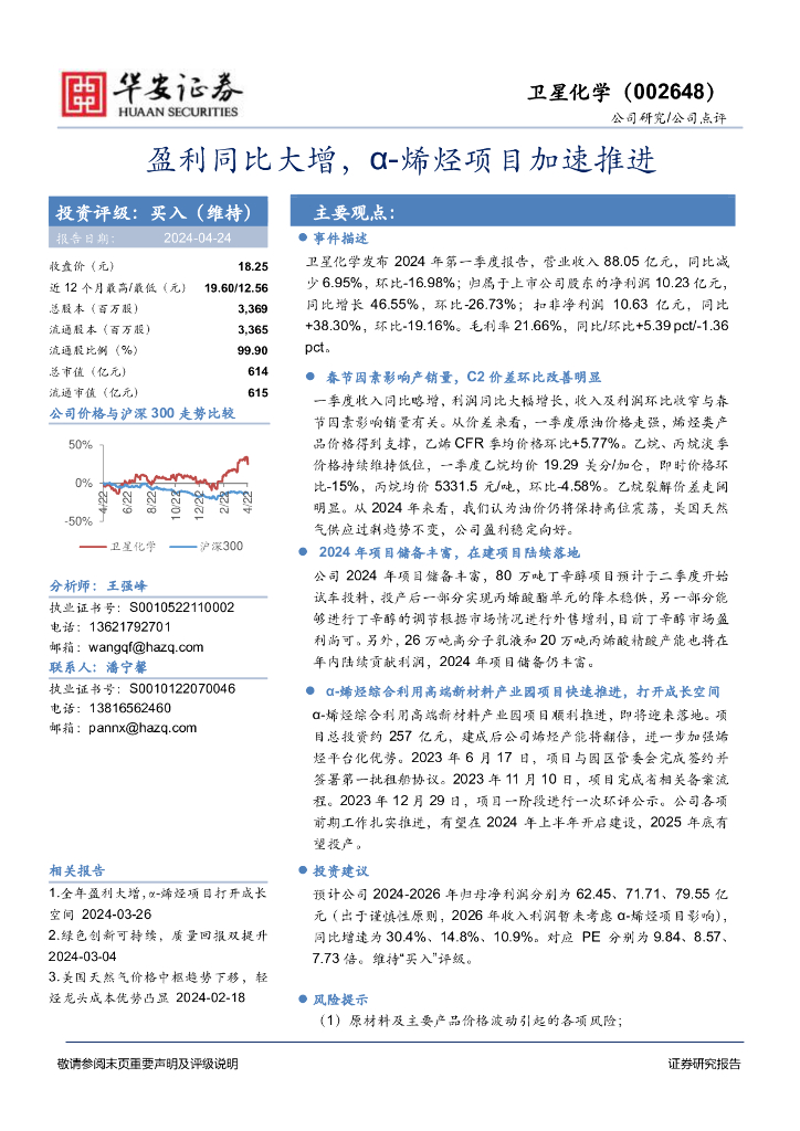华安证券:卫星化学(002648)-盈利同比大增,α-烯烃项目加速推进.pdf