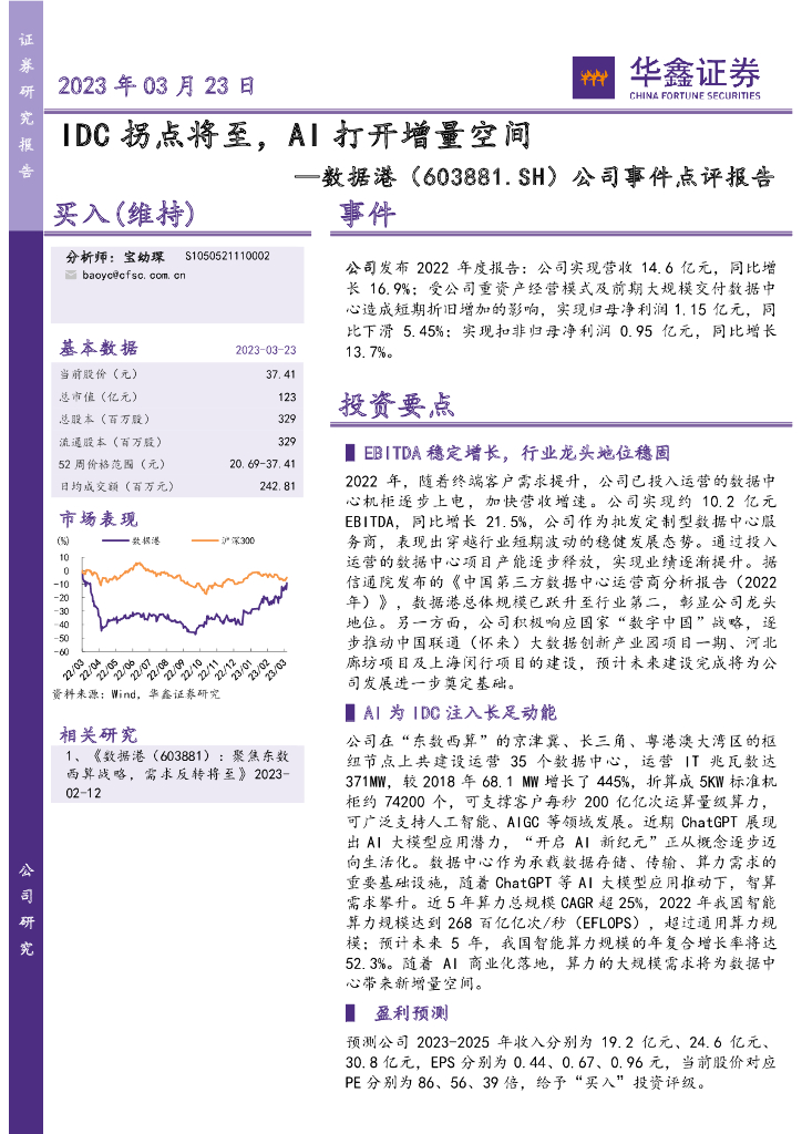 华鑫证券:数据港(603881)-公司事件点评报告:IDC拐点将至,AI打开增量空间.pdf