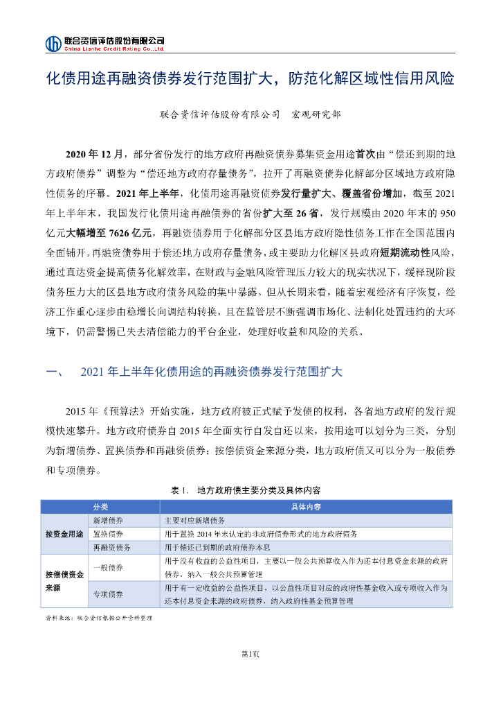 联合资信:化债用途再融资债券发行范围扩大,防范化解区域性信用风险.pdf