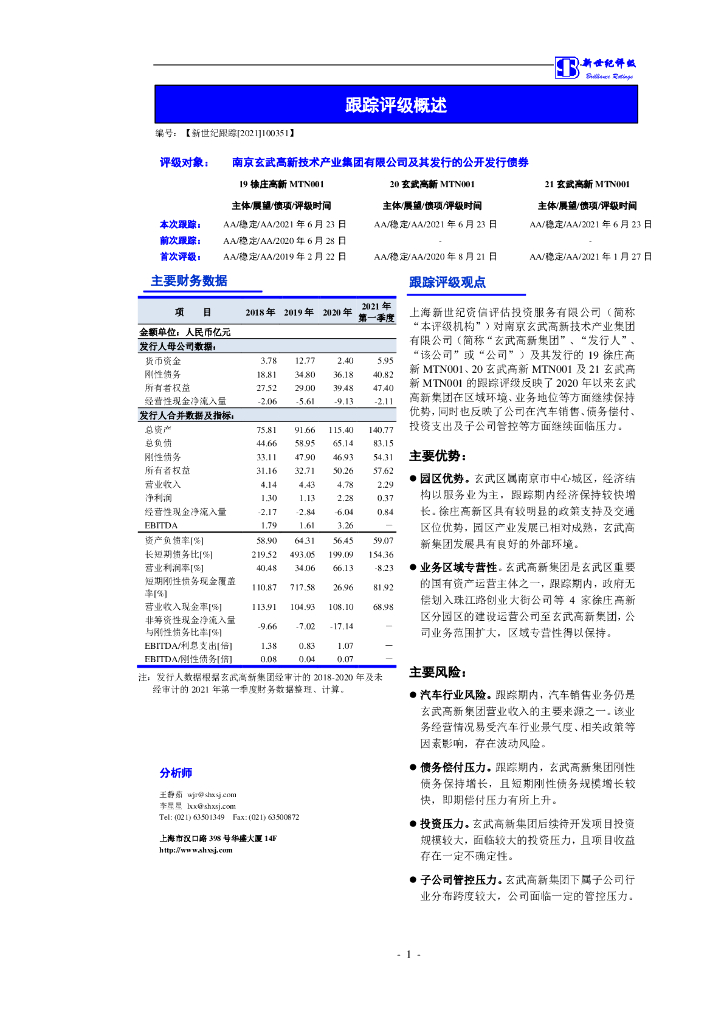 新世纪:南京玄武高新技术产业集团有限公司及其发行的公开发行债券跟踪评级报告.pdf