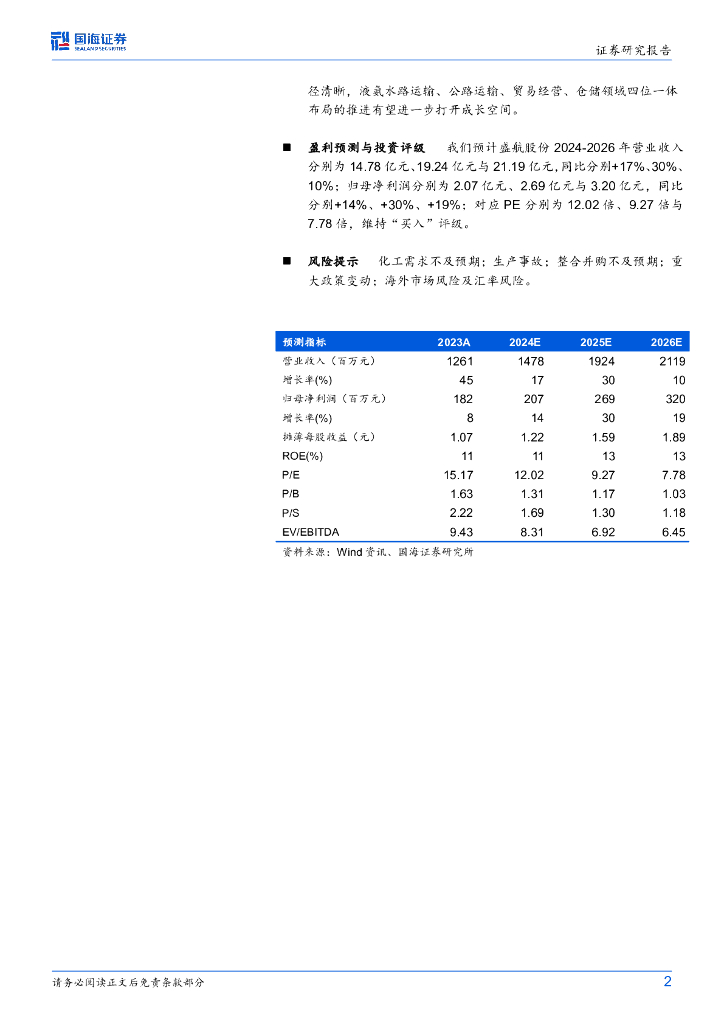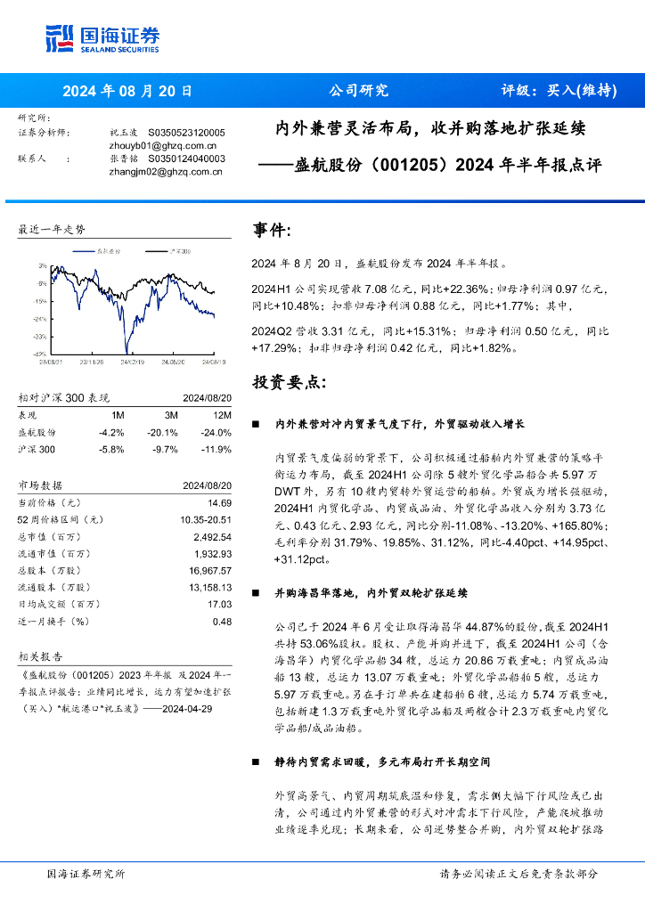国海证券:盛航股份(001205)-2024年半年报点评:内外兼营灵活布局,收并购落地扩张延续.pdf