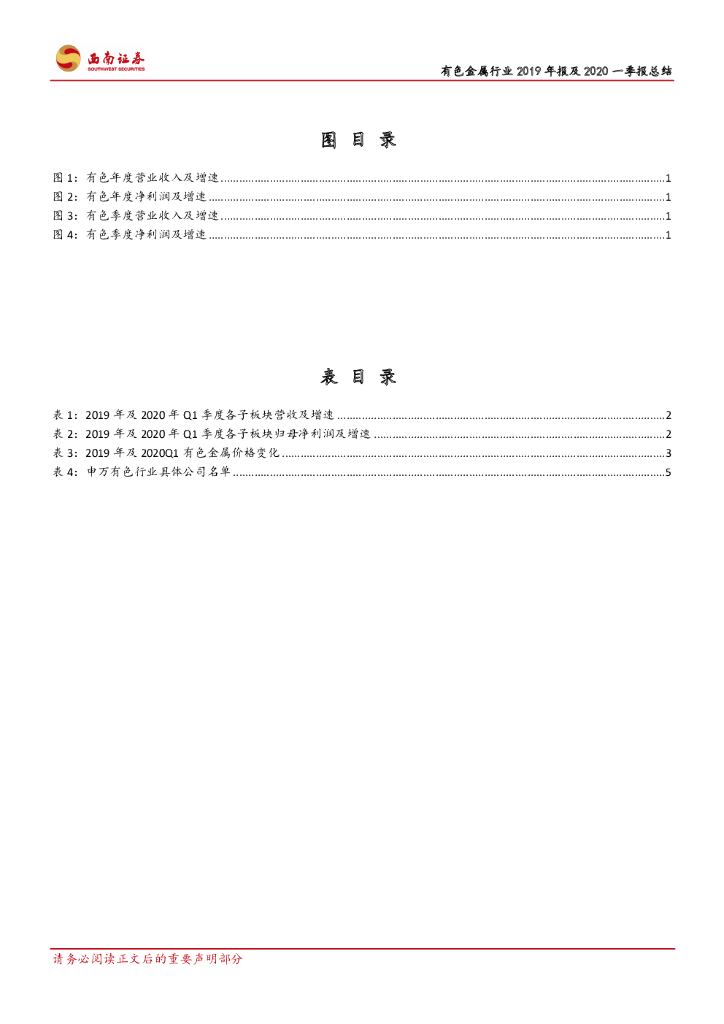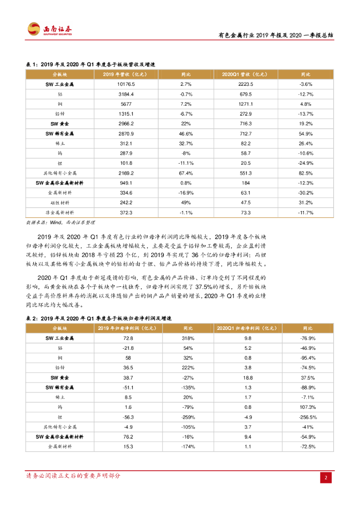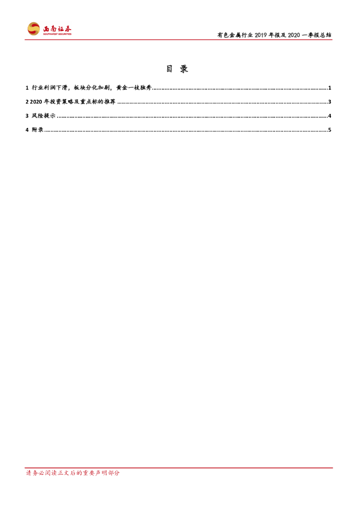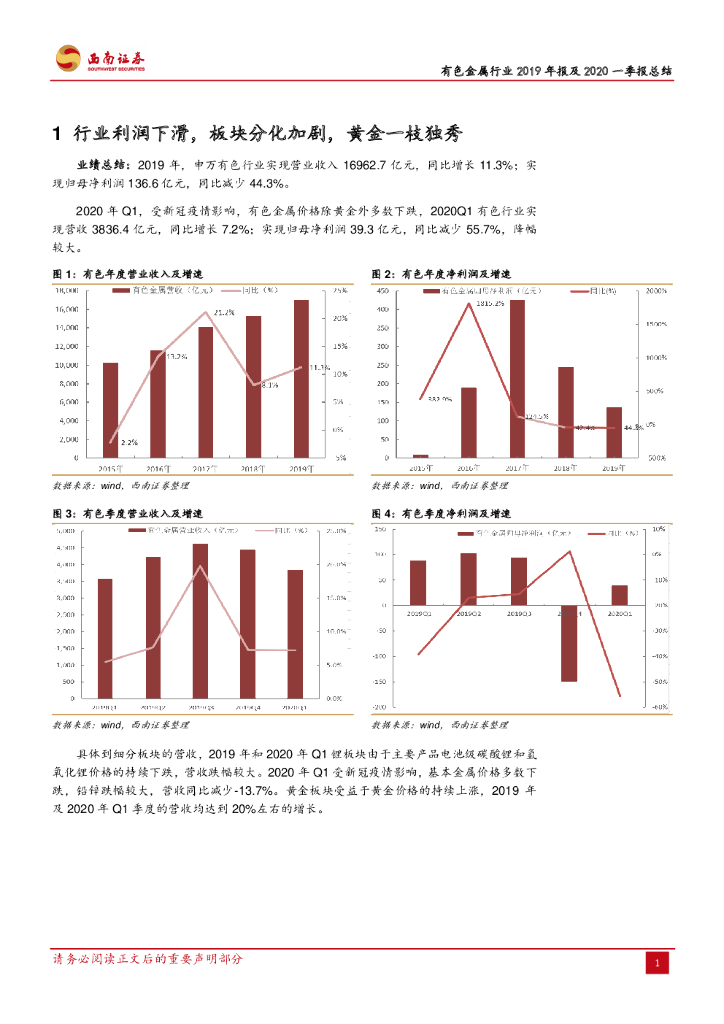 西南证券:有色金属行业2019年报及2020一季报总结:锂钴触底,黄金高景气.pdf