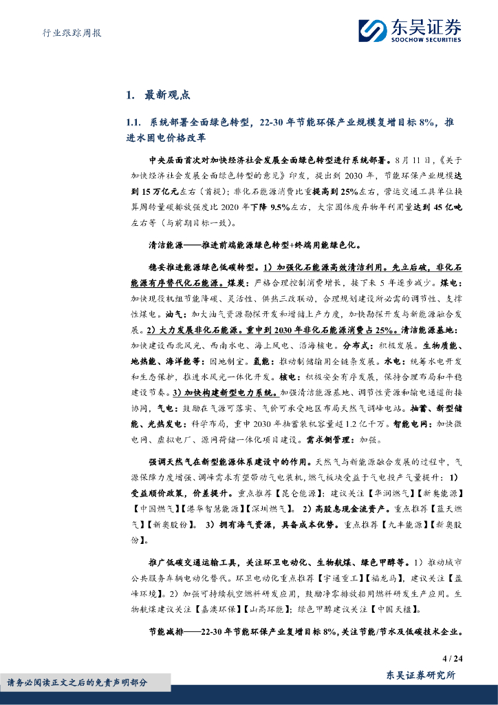 东吴证券:环保行业跟踪周报:中央层面首次系统部署全面绿色转型,重申市场化改革,寻找固废及燃气板块alpha.pdf