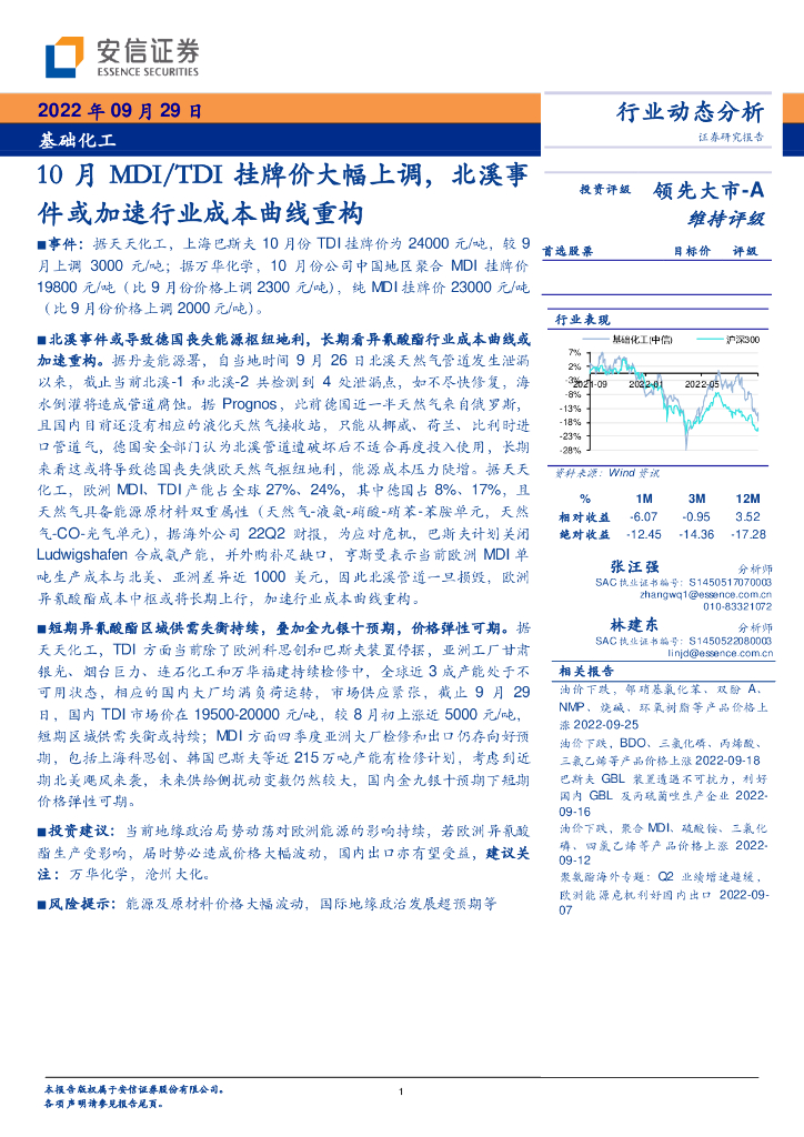 安信证券:基础化工:10月MDI/TDI挂牌价大幅上调,北溪事件或加速行业成本曲线重构.pdf
