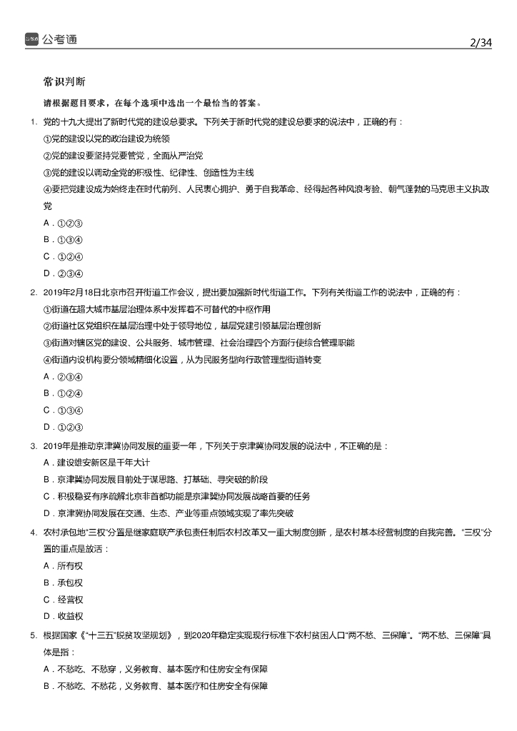 2020年北京公务员考试行测真题及答案(乡镇卷).pdf