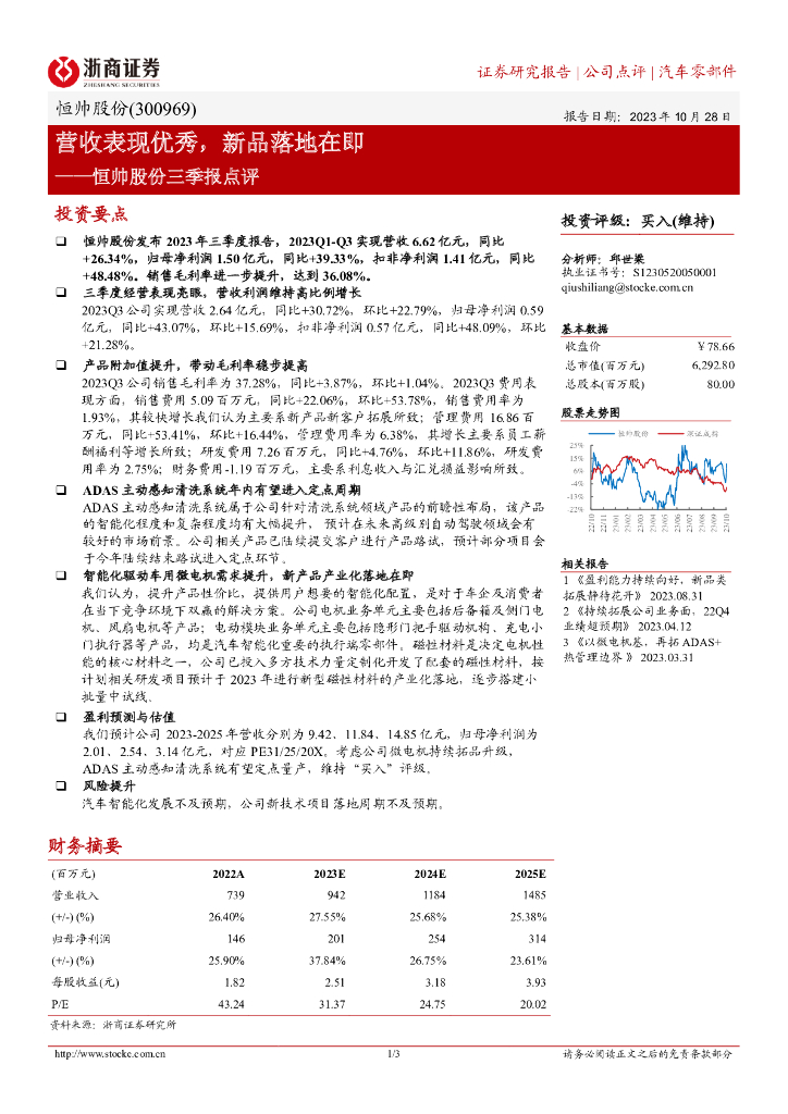 浙商证券:恒帅股份(300969)-营收表现优秀,新品落地在即.pdf