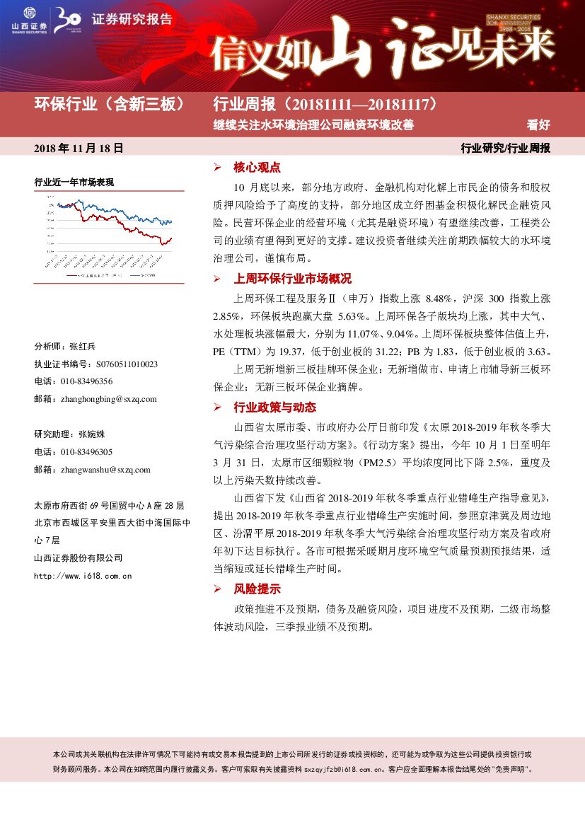 山西证券:环保行业周报:继续关注水环境治理公司融资环境改善.pdf