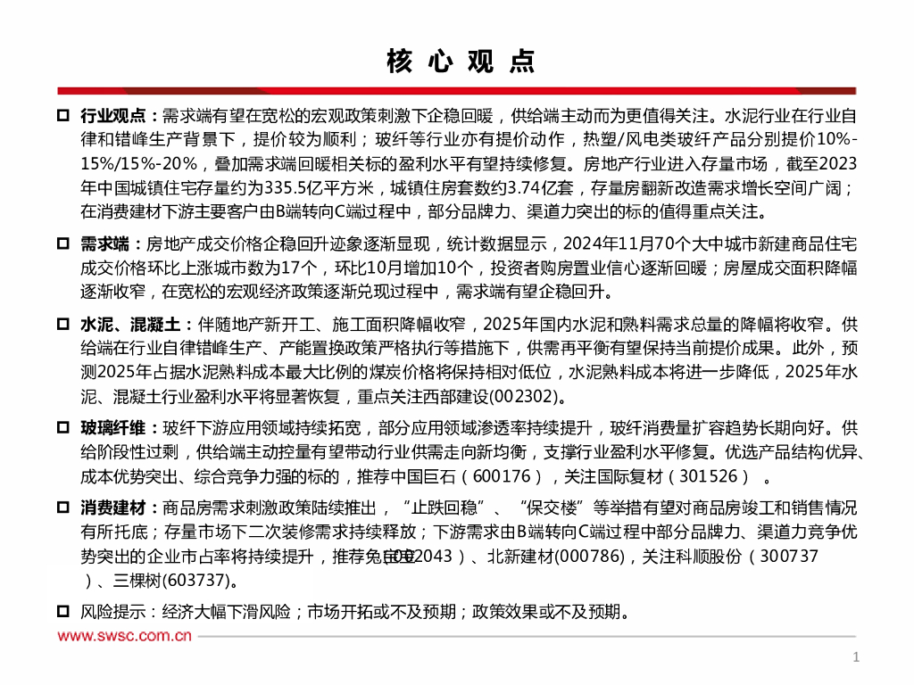 西南证券:建筑材料&新材料行业2025年投资策略:重视供给端积极变化,重点关注消费建材.pdf