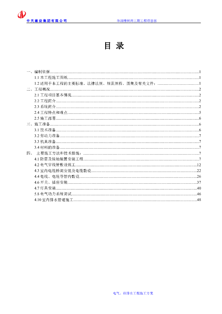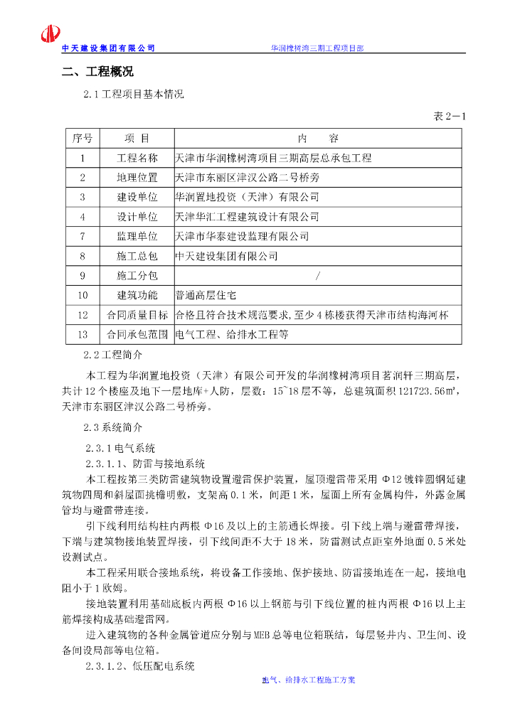 【知名地产橡树湾】高层住宅电气、给排水工程施工方案.doc