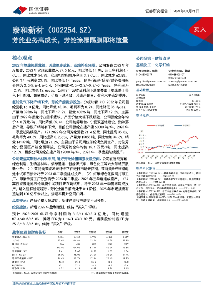 国信证券:泰和新材(002254)-芳纶业务高成长,芳纶涂覆隔膜即将放量.pdf