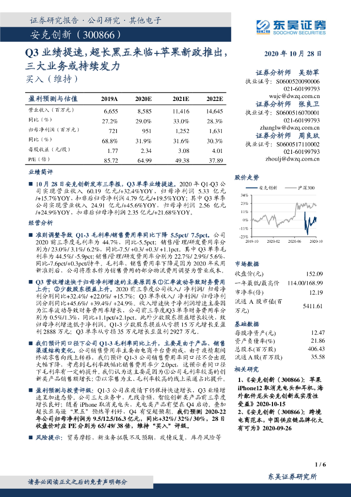 东吴证券:安克创新(300866)-Q3业绩提速,超长黑五来临+苹果新政推出,三大业务或持续发力.pdf