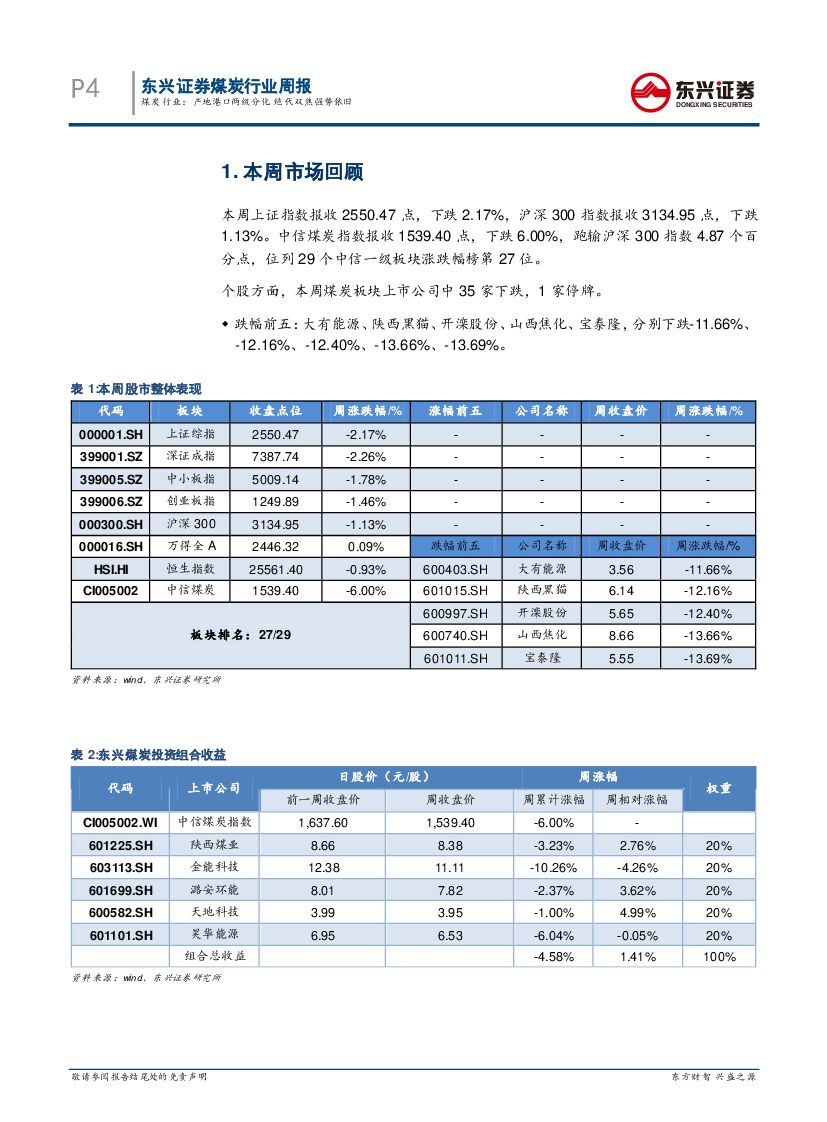 东兴证券:煤炭行业周报:产地港口两级分化,绝代双焦强势依旧.pdf