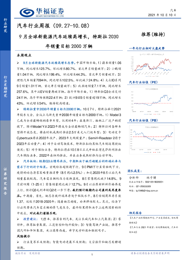 华福证券:汽车行业周报:9月全球新能源汽车延续高增长,特斯拉2030年销量目标2000万辆.pdf
