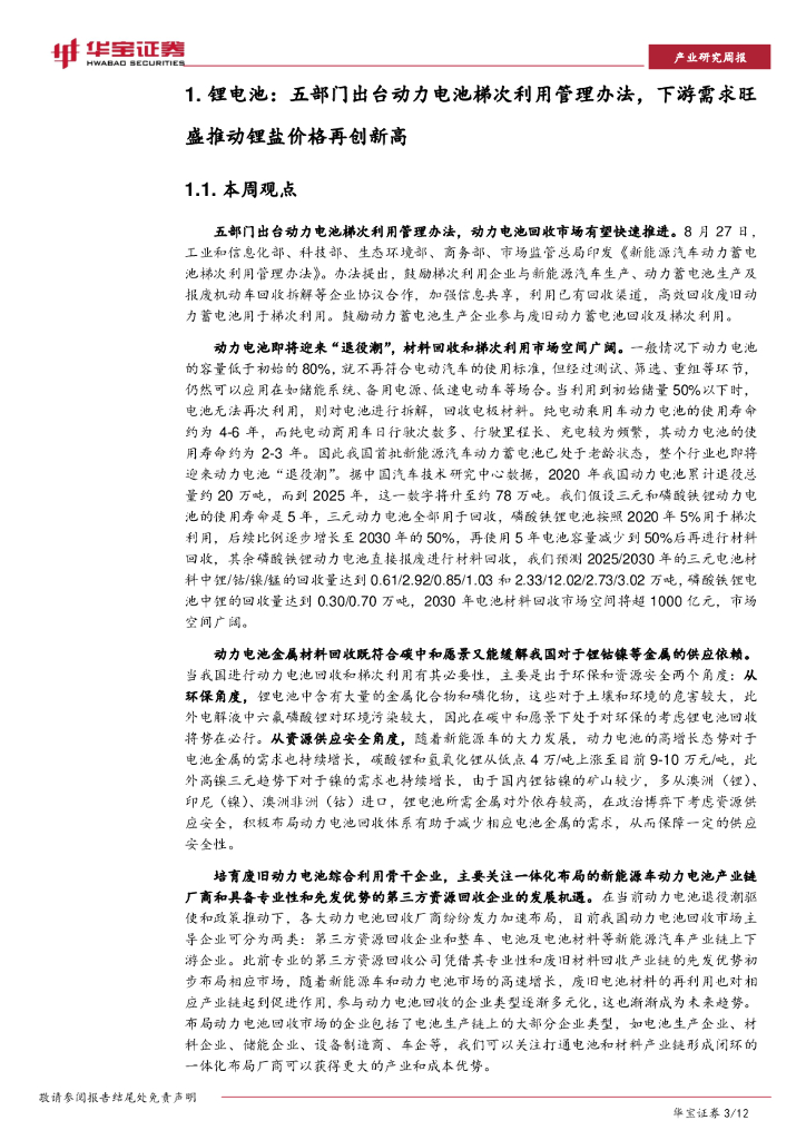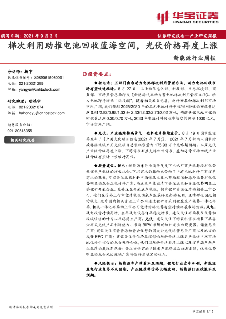 华宝证券:新能源行业周报:梯次利用助推电池回收蓝海空间,光伏价格再度上涨.pdf