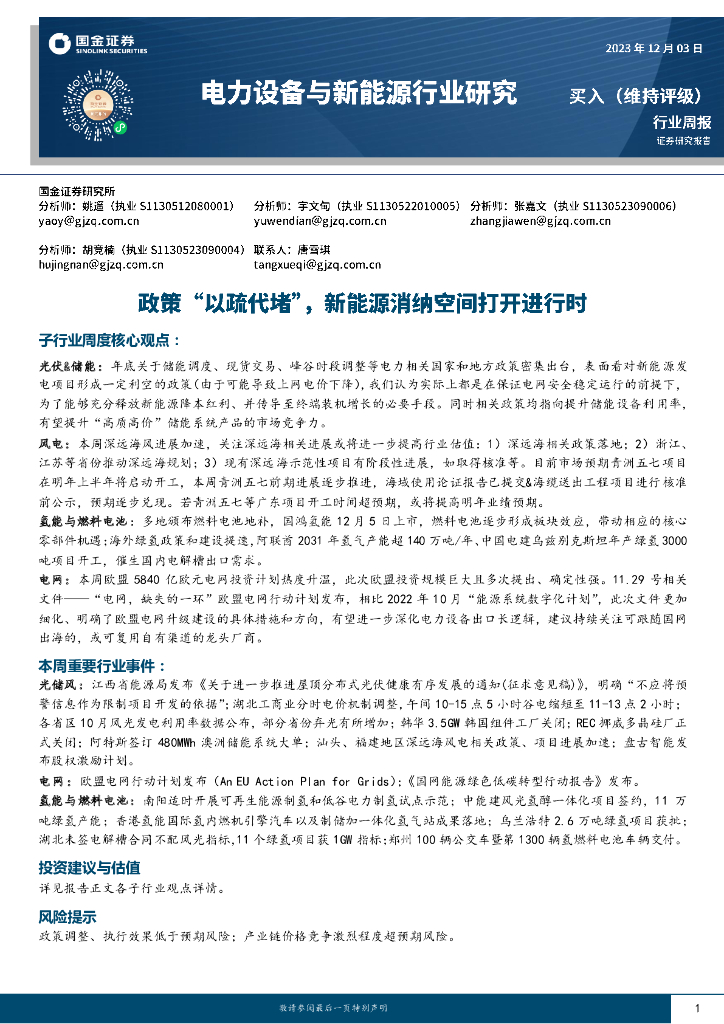 国金证券:电力设备与新能源行业周报:政策“以疏代堵”,新能源消纳空间打开进行时.pdf