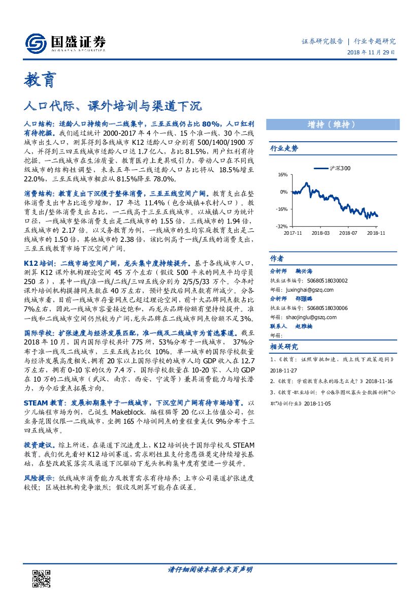 国盛证券:教育行业专题研究:人口代际、课外培训与渠道下沉.pdf