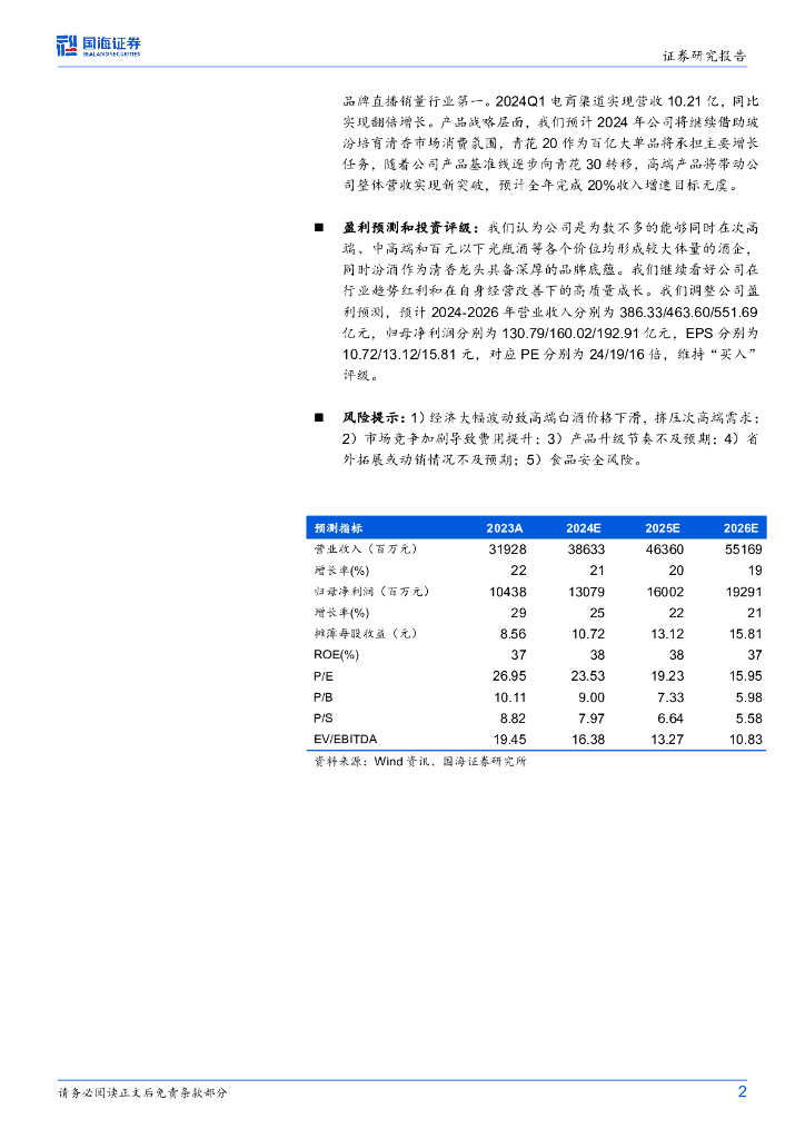 国海证券:山西汾酒(600809)-收入跨越三百亿元,复兴道路势能强劲2023年报及2024年一季报点评.pdf