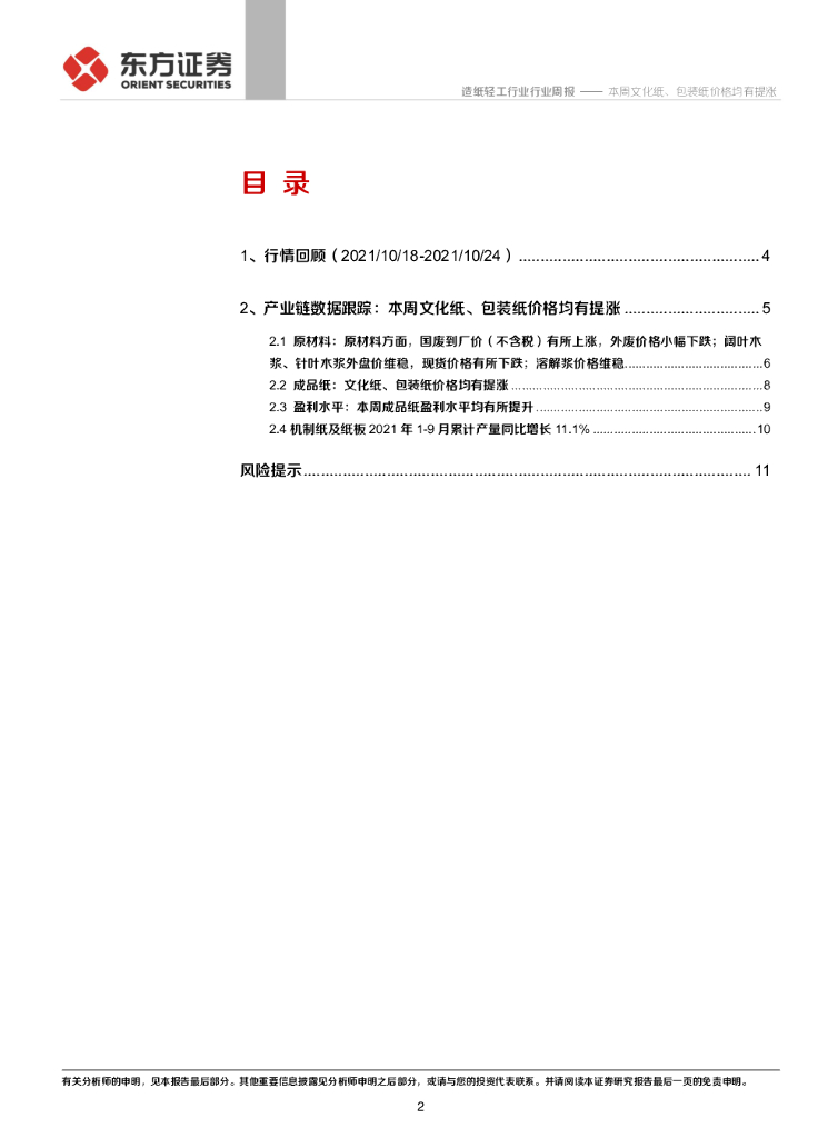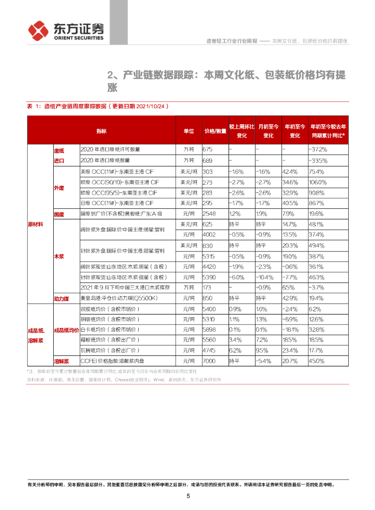 东方证券:造纸产业链数据每周速递:本周文化纸、包装纸价格均有提涨.pdf