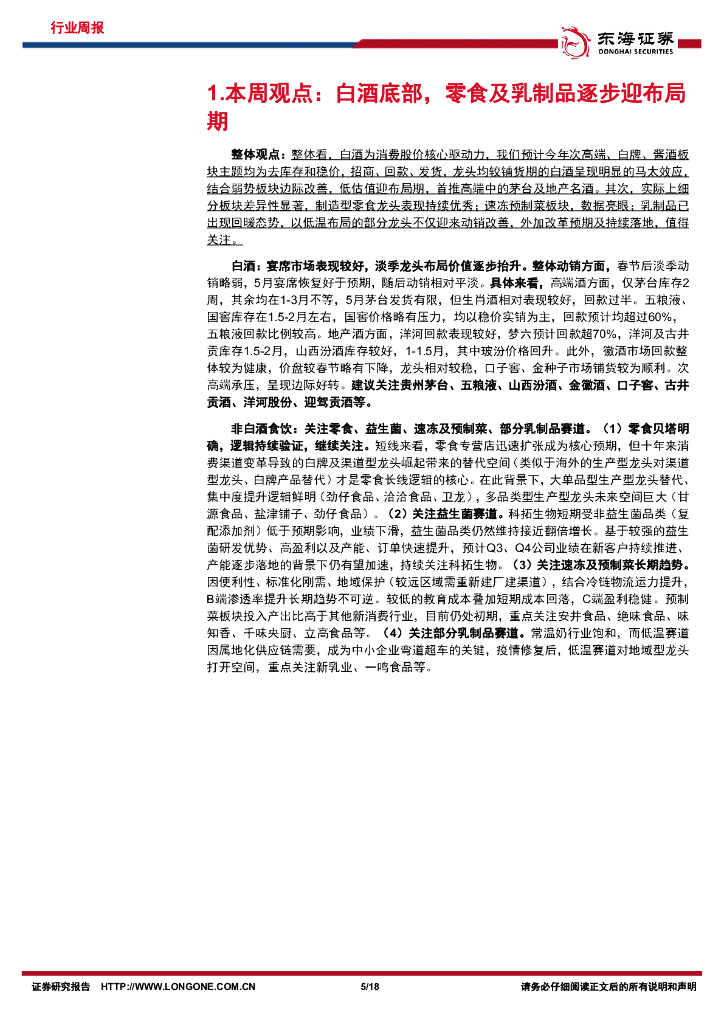 东海证券:食品饮料行业周报:白酒底部,零食及乳制品逐步迎布局期.pdf