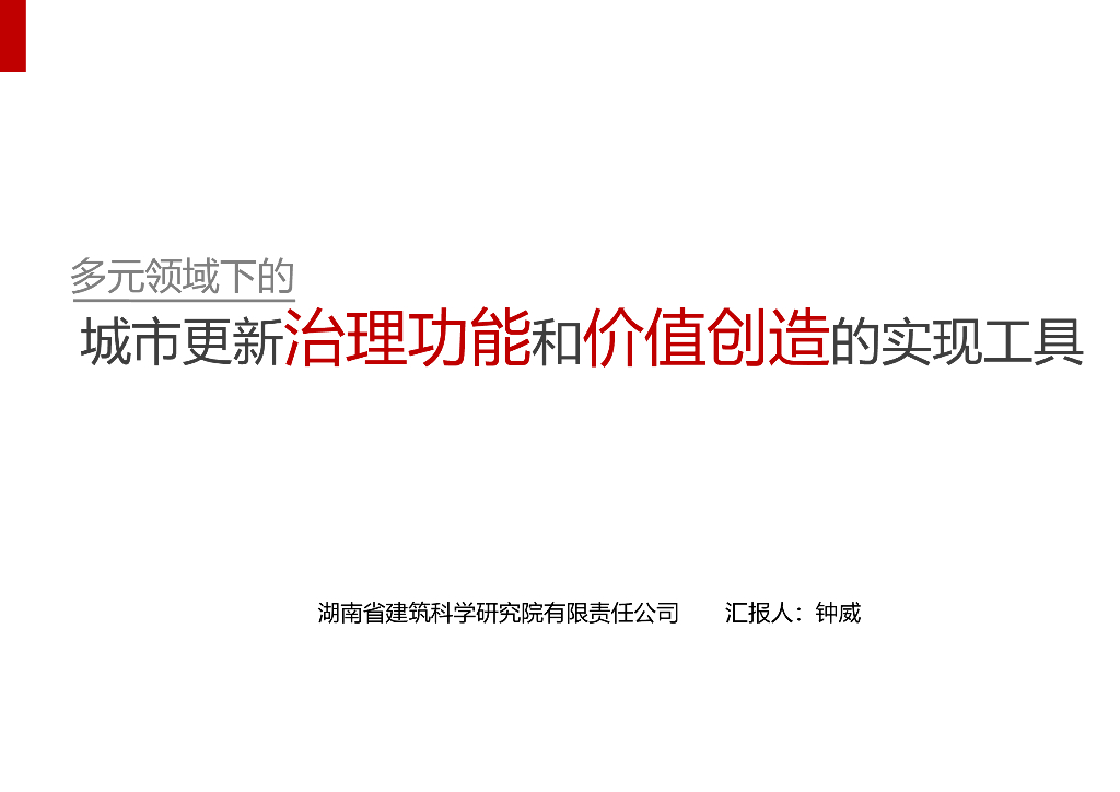 湖南建筑科学研究院:多元领域下的城市更新治理功能和价值创造的实现工具.ppt