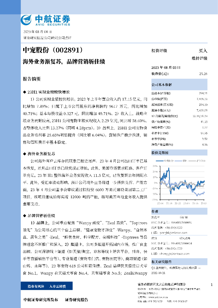 中航证券:中宠股份(002891)-海外业务渐复苏,品牌营销斩佳绩.pdf