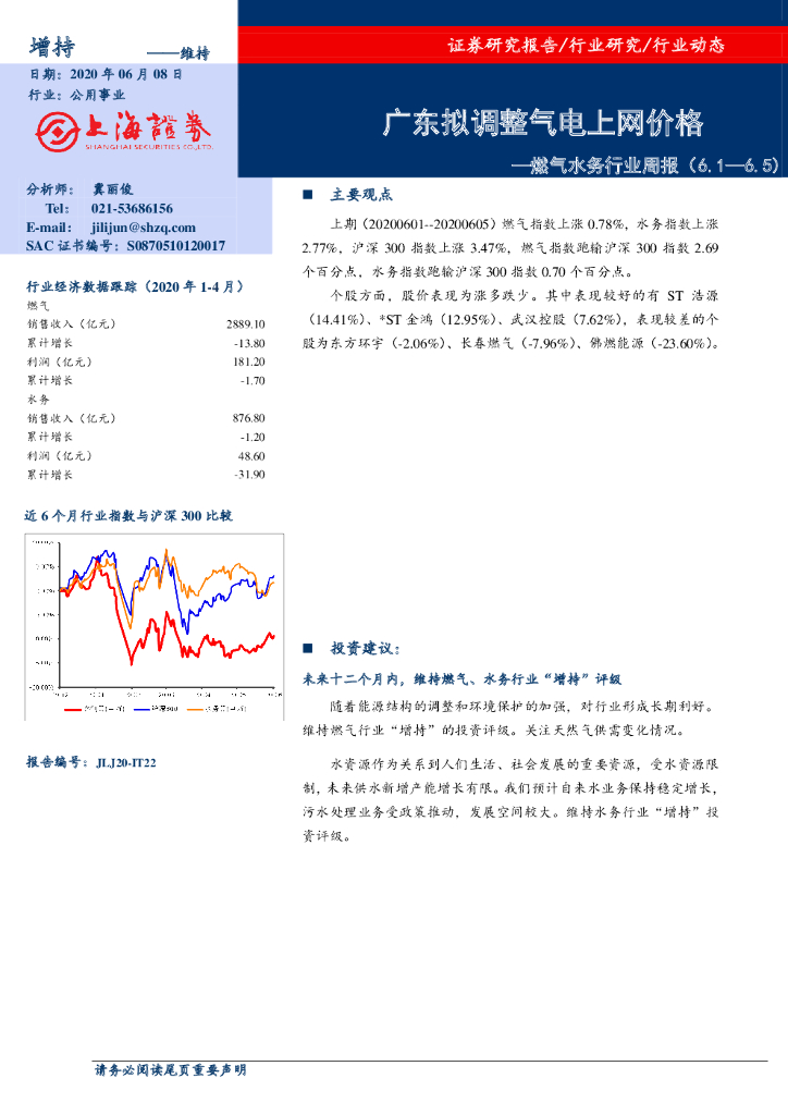 上海证券:燃气水务行业周报:广东拟调整气电上网价格.pdf