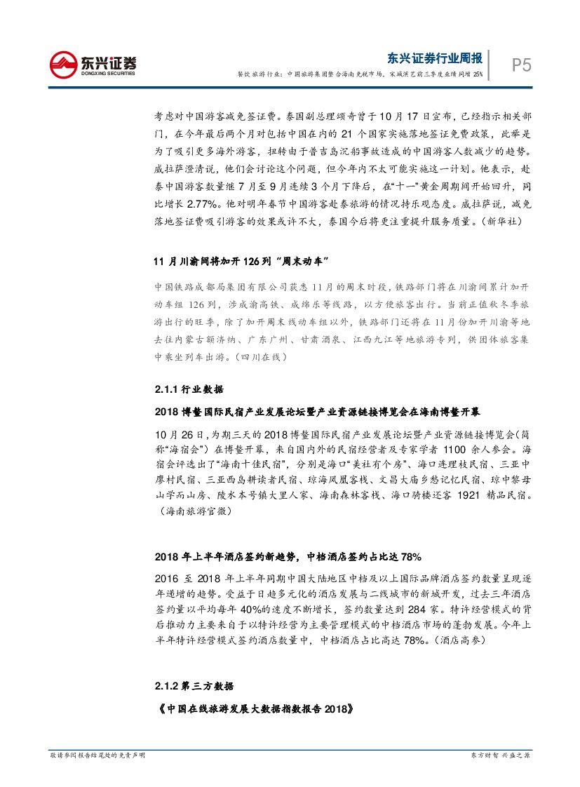 东兴证券:餐饮旅游行业2018年10月第3周周报:中国旅游集团整合海南免税市场,宋城演艺前三季度业绩同增25%.pdf