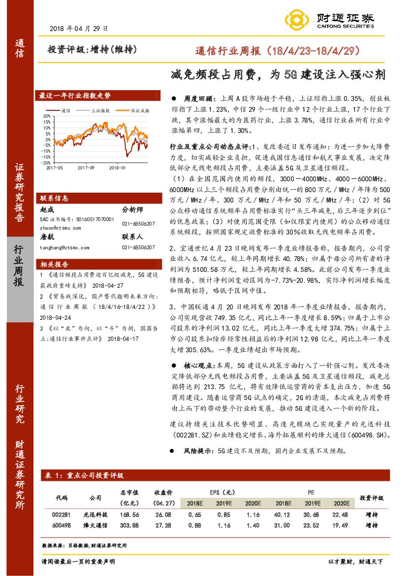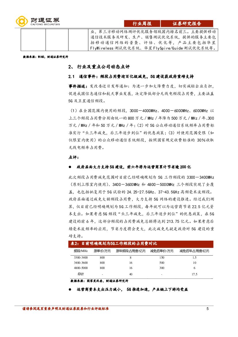 财通证券:通信行业周报:减免频段占用费,为5G建设注入强心剂.pdf