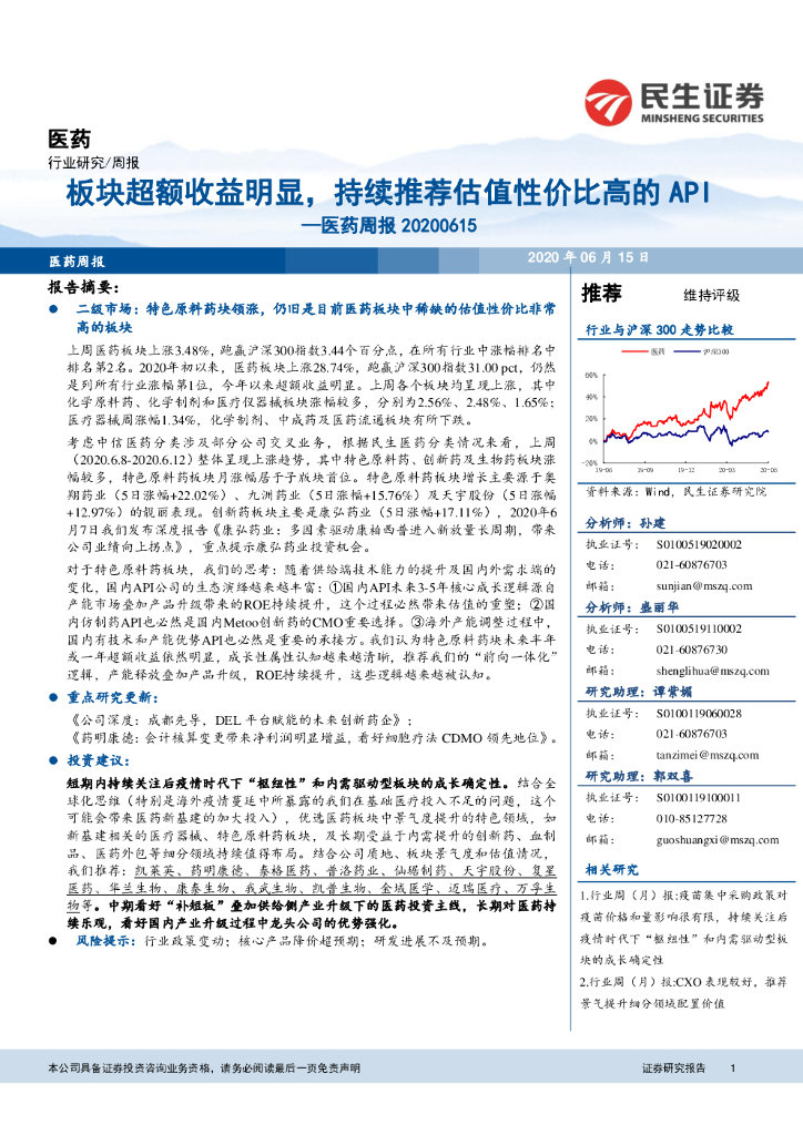 民生证券:医药周报:板块超额收益明显,持续推荐估值性价比高的API.pdf