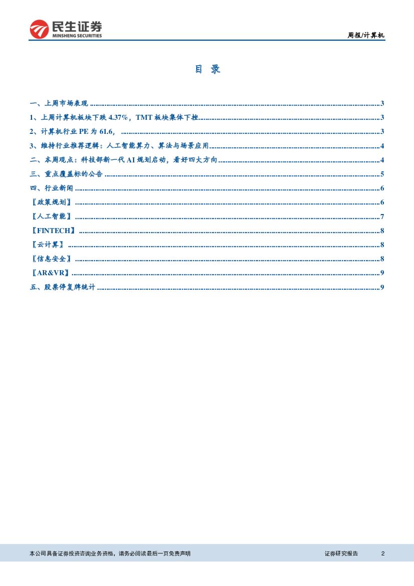 民生证券:计算机行业周报:人工智能再受政策催化,关注后期落地应用.pdf