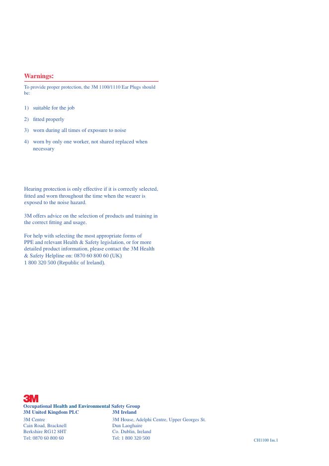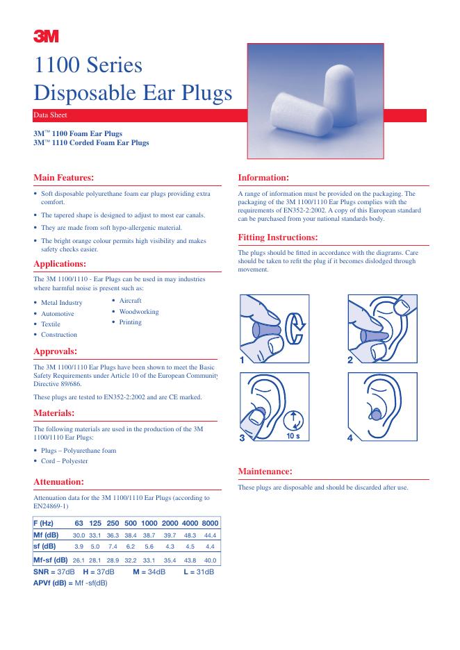 3M 1100 Series Disposable Ear Plugs 数据手册.pdf