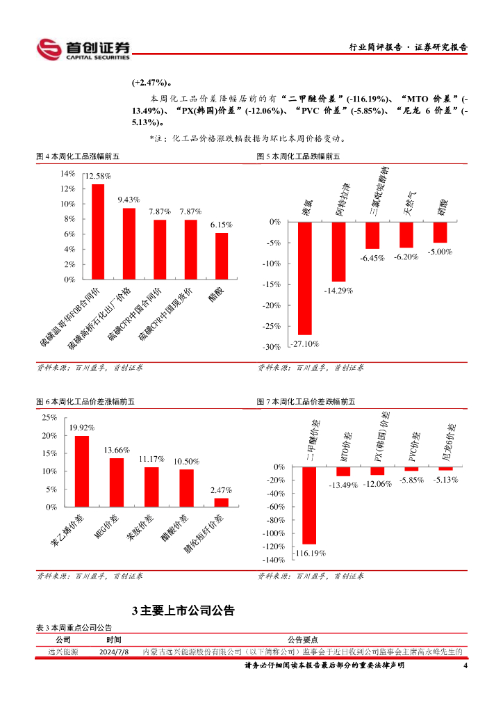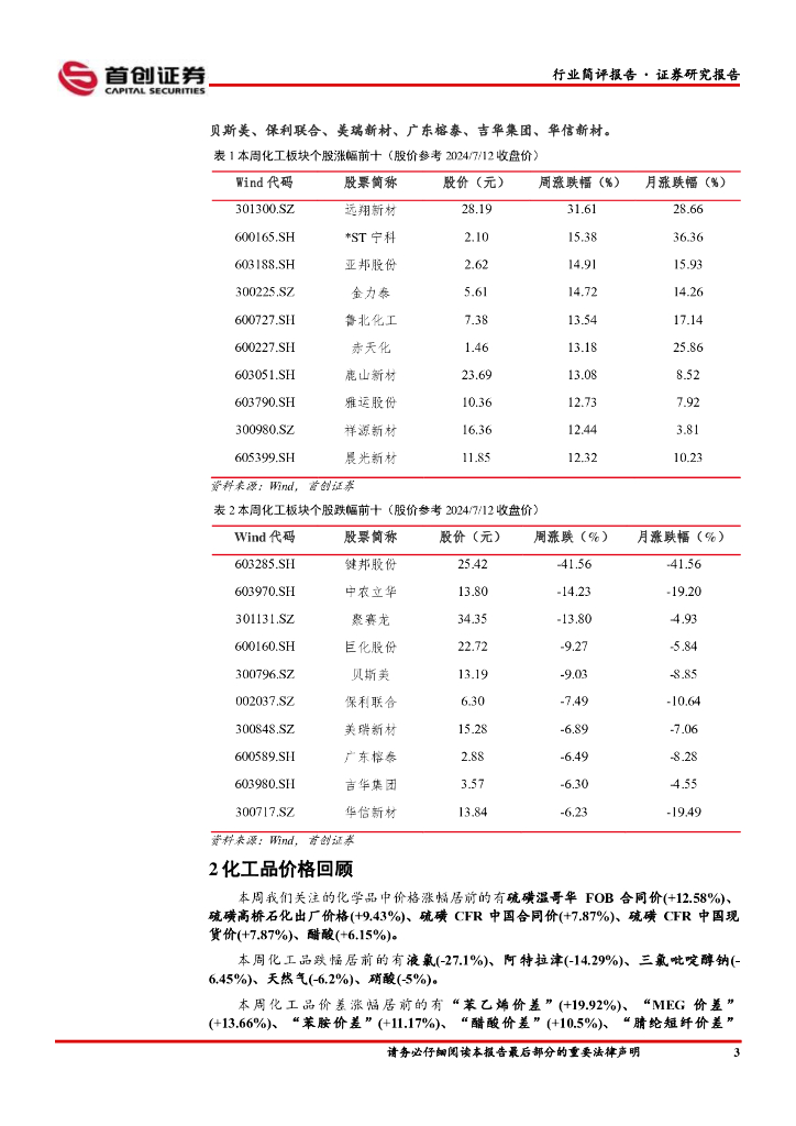 首创证券:基础化工行业简评报告:硫磺价格涨幅居前,森麒麟2024年上半年业绩同比高增.pdf