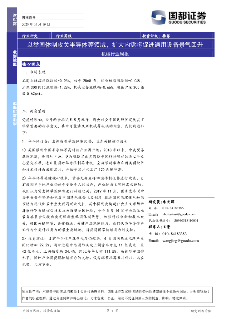 国都证券:机械设备行业周报:以举国体制攻关半导体等领域,扩大内需将促进通用设备景气回升.pdf