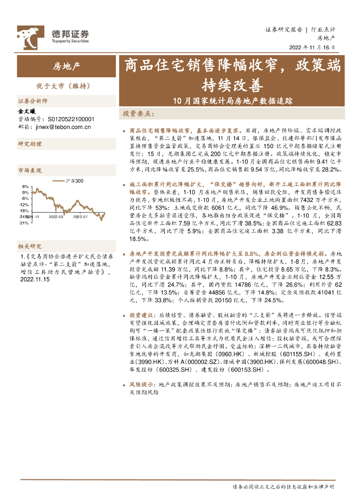 德邦证券:10月国家统计局房地产数据追踪:商品住宅销售降幅收窄,政策端持续改善.pdf
