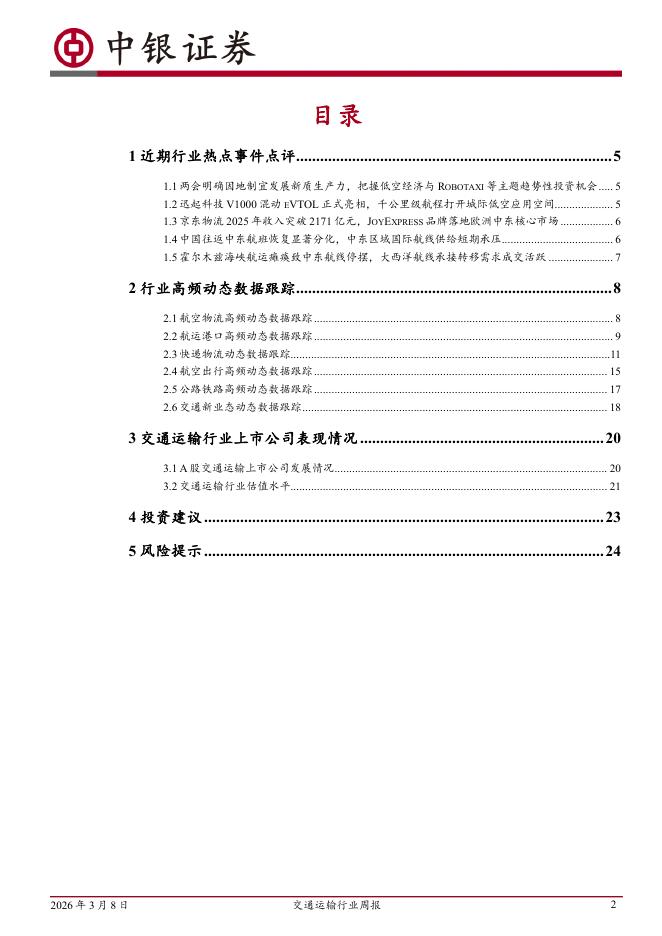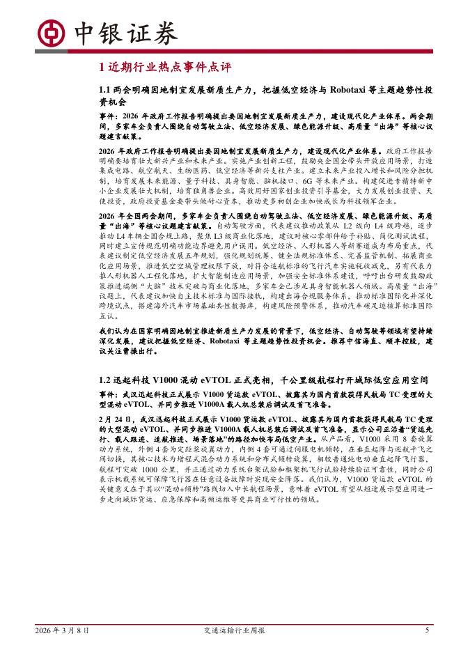 中银证券:交通运输行业周报:两会明确因地制宜发展新质生产力,把握低空经济与Robotaxi等主题趋势性投资机会.pdf
