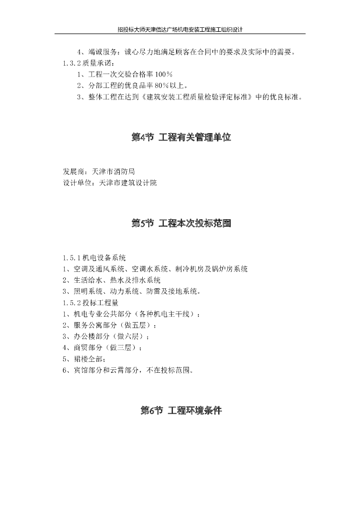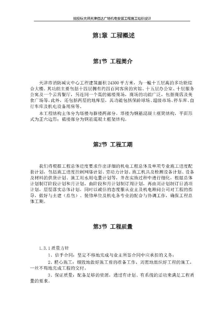 天津某广场机电安装工程施工组织设计方案.doc