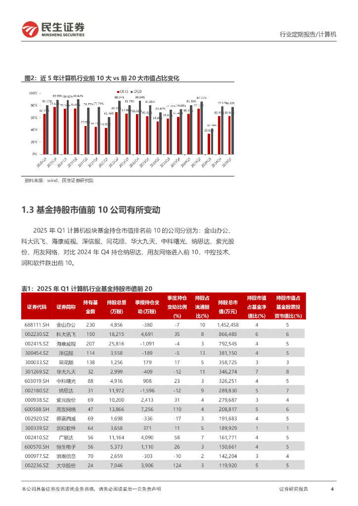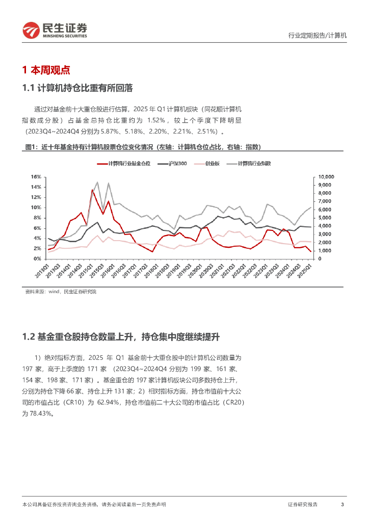 民生证券:计算机周报:计算机行业2025Q1持仓分析:机构持仓处历史底部,集中度进一步提升.pdf