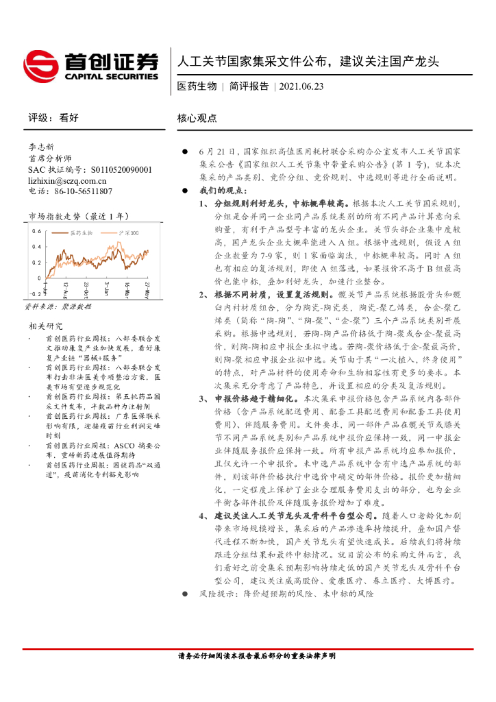 首创证券:医药生物简评报告:人工关节国家集采文件公布,建议关注国产龙头.pdf