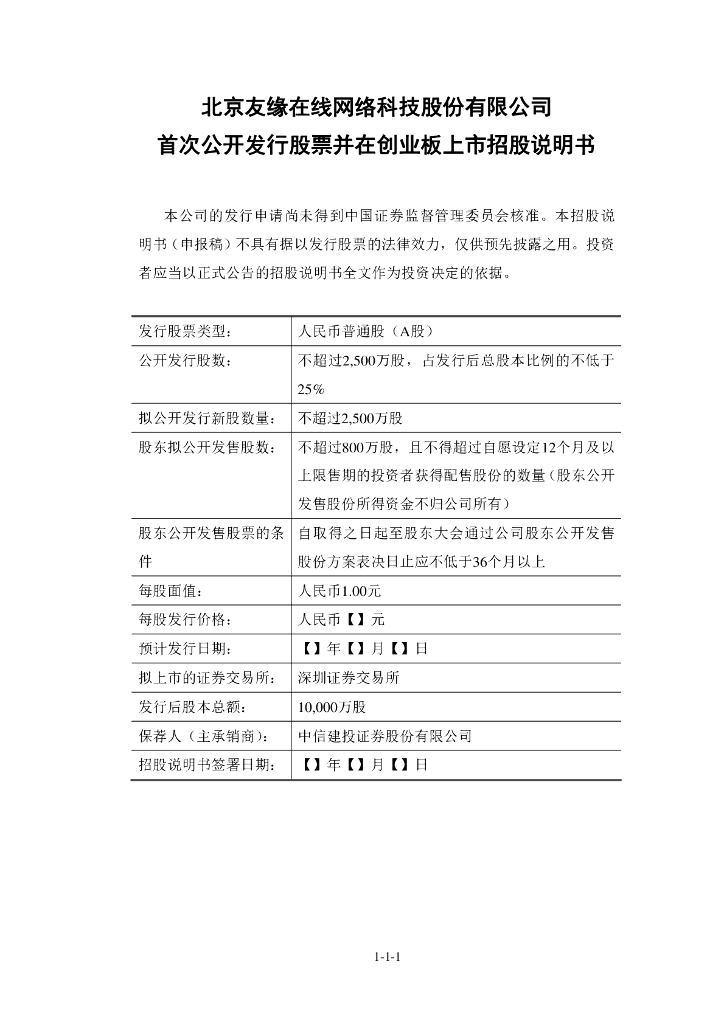 北京友缘在线网络科技股份有限公司深交所创业板IPO上市招股说明书.pdf