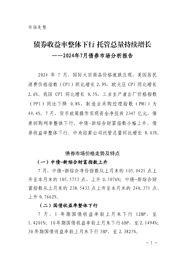 中国债券信息网:债券收益率整体下行 托管总量持续增长——2024年7月债券市场分析报告.pdf