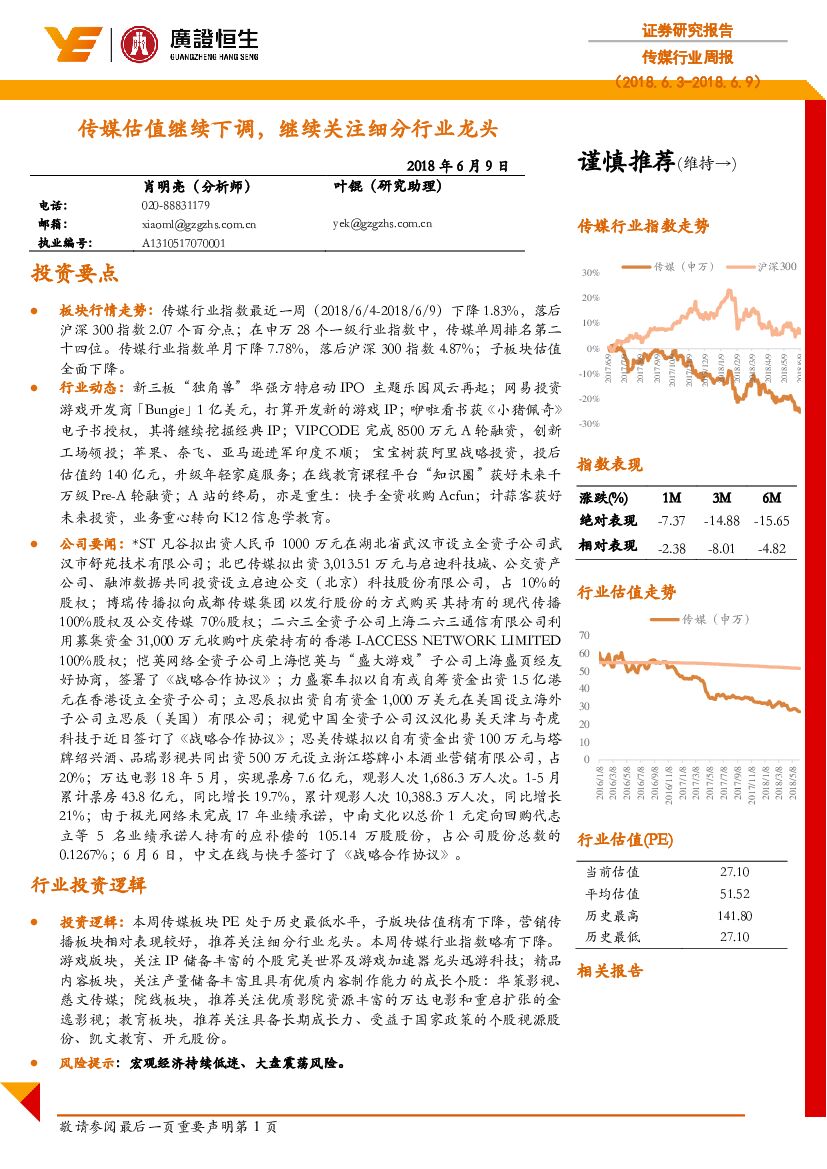 广证恒生证券研究所:传媒行业周报:传媒估值继续下调,继续关注细分行业龙头.pdf
