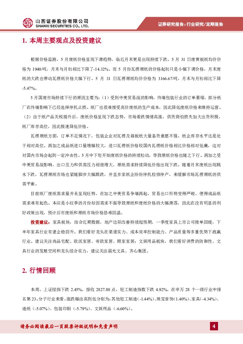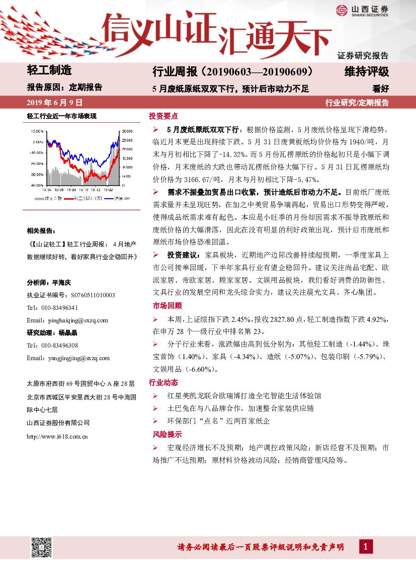 山西证券:轻工制造行业周报:5月废纸原纸双双下行,预计后市动力不足.pdf