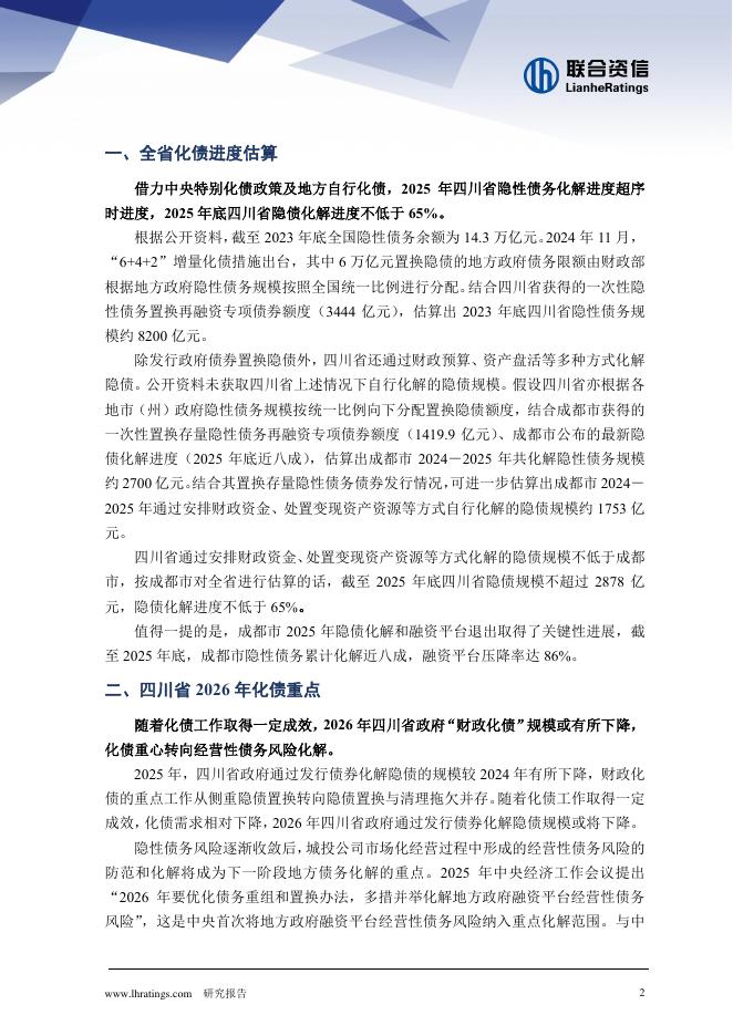 联合资信:2026年从预算执行报告及政府工作报告看地方化债情况-以四川省为例.pdf