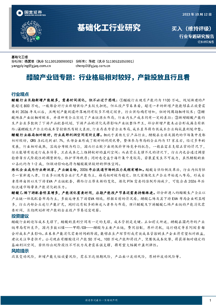 国金证券:基础化工行业研究:醋酸产业链专题:行业格局相对较好,产能投放且行且看.pdf