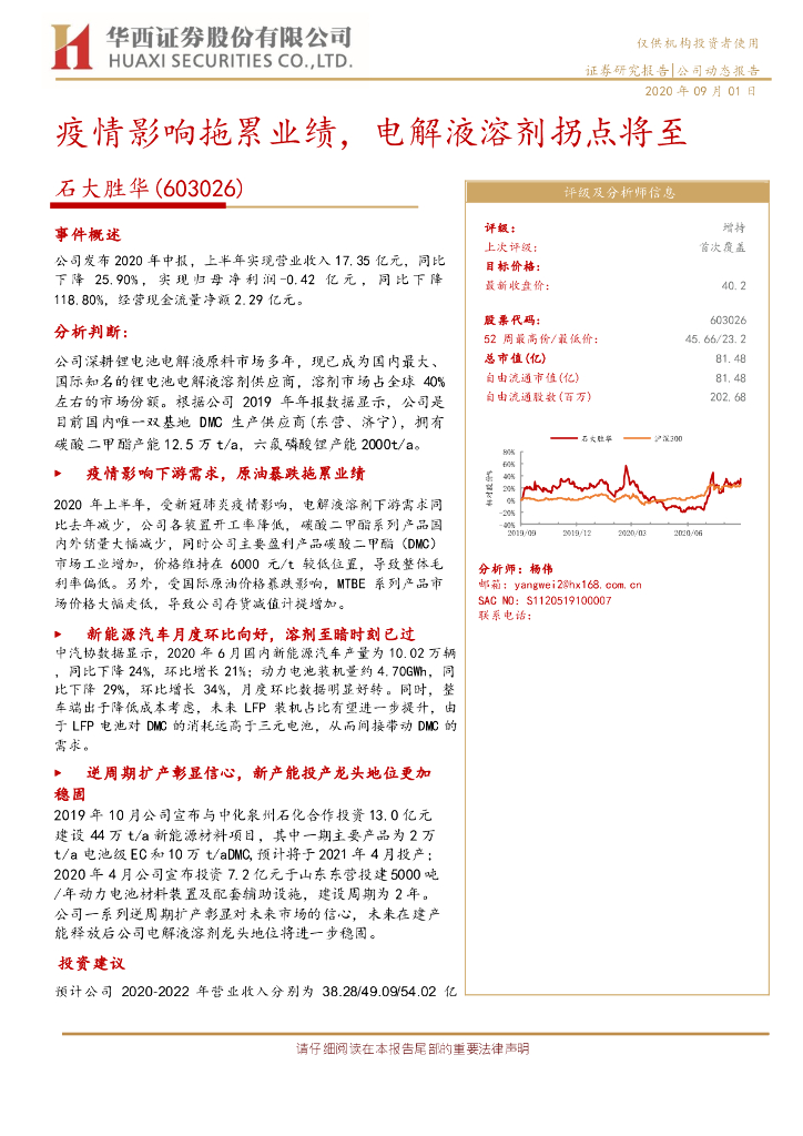 华西证券:石大胜华(603026)-疫情影响拖累业绩,电解液溶剂拐点将至.pdf