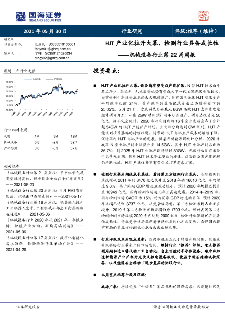 国海证券:机械设备行业第22周周报:HJT产业化拉开大幕,检测行业具备成长性.pdf