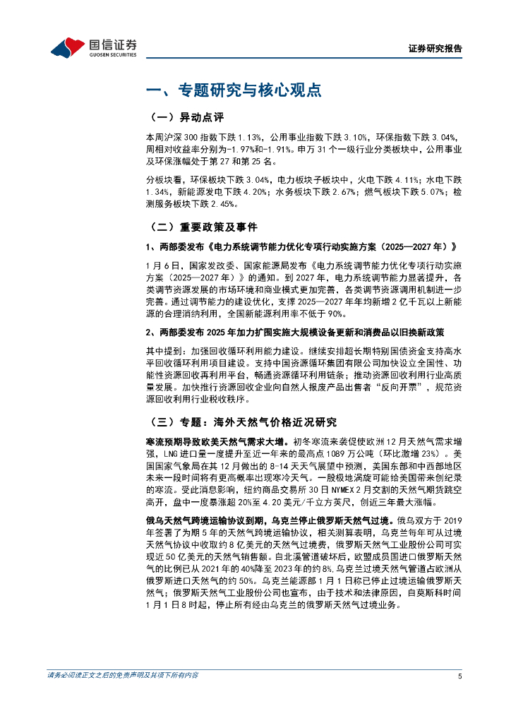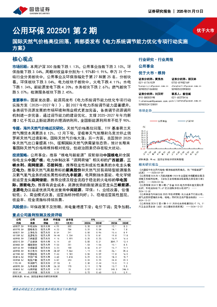 国信证券:公用环保行业202501第2期:国际天然气价格高位回落,两部委发布《电力系统调节能力优化专项行动实施方案》.pdf